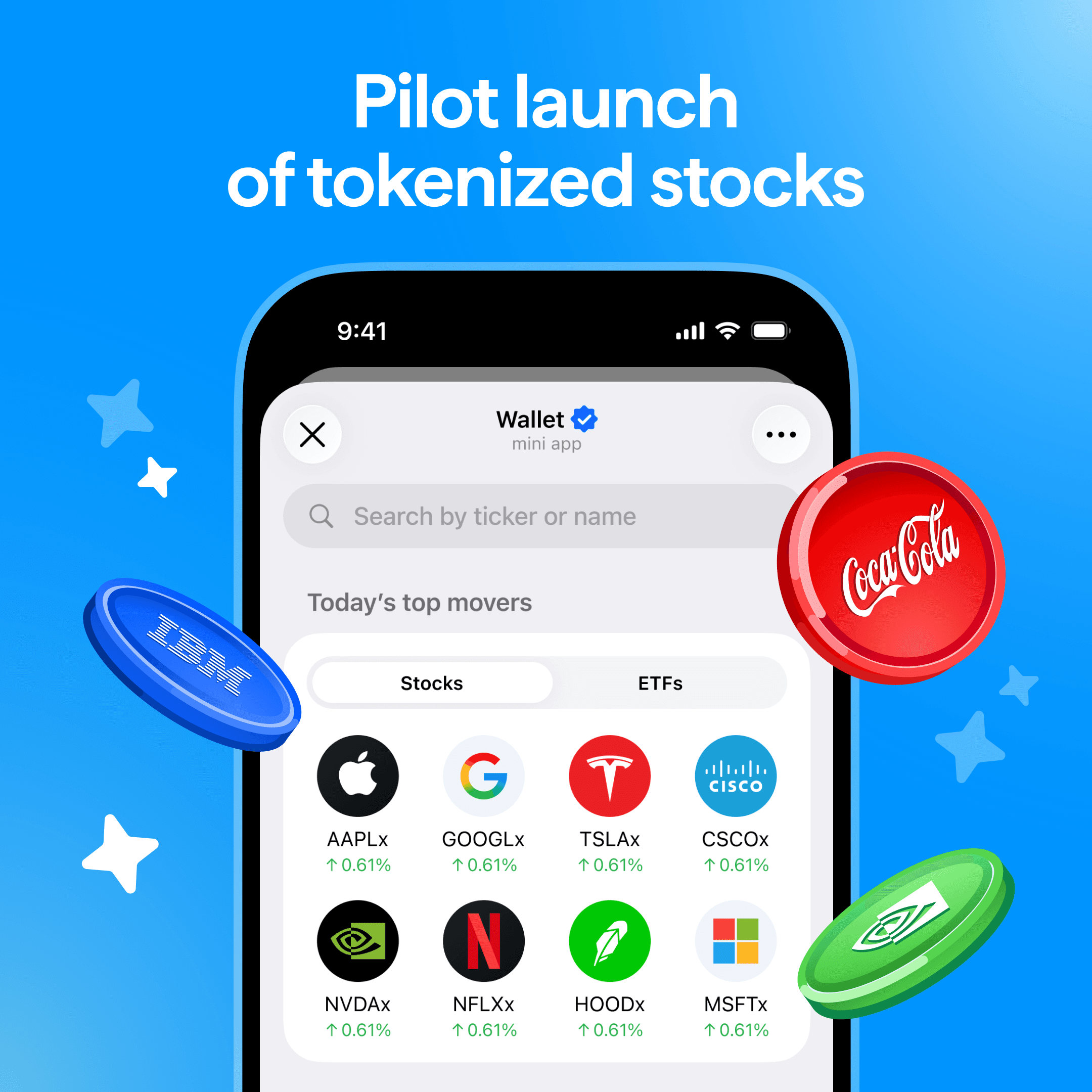 With more than 60 assets available, users can gain exposure to leading global companies and major exchange-traded funds (ETFs) without leaving Telegram.